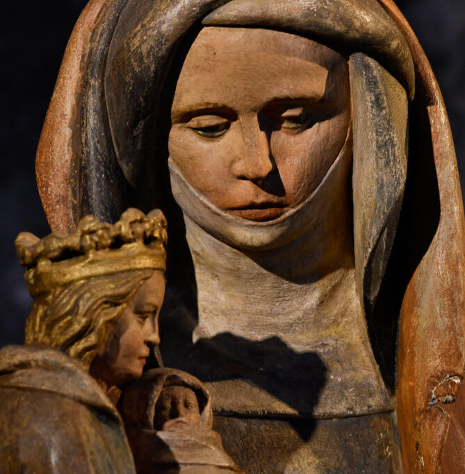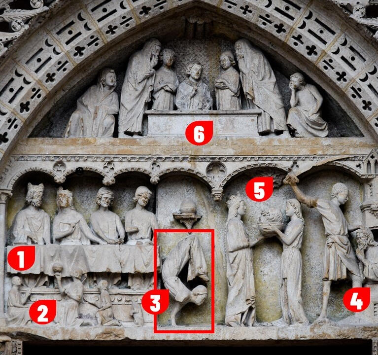 Cette sculpture est difficile à comprendre sans explications. C'est le genre d'études de cas que j'aime vous soumettre et vous décoder.En lisant mon infolettre vous saurez mieux identifier les symboles et les personnages représentés dans les églises. Vous repèrerez les détails que les autres visiteurs ne voient pas.